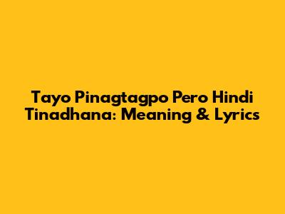 Ever heard a song that just gets you right in the feels? "Tayo Pinagtagpo Pero Hindi Tinadhana" is one of those songs. It's a Filipino phrase that translates to "We met, but we weren't destined to be together." Ouch, right? This sentiment is super common, and it's why the phrase, often found in song lyrics and spoken word poetry, resonates with so many people. Let's dive into the heart of this poignant expression, explore its lyrical beauty, and understand why it strikes such a deep chord.